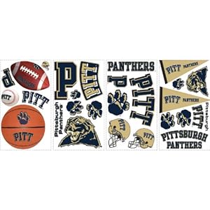 Product Description : From the ManufacturerGet your team spirit on with this set of collegiate multi-sports wall stickers. Our University of Pitt wall decals can be placed safely on any smooth surface. Great for bedrooms, dorm rooms, and offices. You can move them around whenever you like, or replace them on their original liners for later use. Use them to decorate a room during your next football party, then store them until the next game. Works on tiles, accessories, mirrors, lockers, refrigerators, laptop covers, and even cars! RoomMates are so much more versatile than a conventional sticker. A great gift idea, too! Product Description : RMK1701SCS Get your team spirit on with this set of collegiate multi-sports wall stickers. Our University of Pitt wall decals can be placed safely on any smooth surface. Great for bedrooms, dorm rooms, and offices. You can move them around whenever you like, or replace them on their original liners for later use. Use them to decorate a room during your next football party, then store them until the next game. Works on tiles, accessories, mirrors, lockers, refrigerators, laptop covers, and even cars! RoomMates are so much more versatile than a conventional sticker. A great gift idea, too! Features: -Wall decal. -Peel and Stick laptop wear. -Prepositional and removable with no damage to walls or surface. -4 Sheets 10" x 18". -Comes with 28 elements. -Assembly required. -Made in the USA.